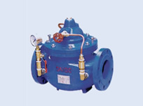 工作原理:當閥門從進口端給水時,水通過微型過濾器、針閥、單向閥進入主閥控制室,再經過球閥排水至下游。因為針閥開度小于球閥開度,即主閥控制室的排水速度大于進水速度,因此控制室壓力降低,作用于主閥盤下端的進口壓力打開主閥向下游供水。當管道停止供水時,若下游水開始回流,一部分回流水經球閥進入主控制室,由于單向閥作用,回流水不能從主控制室流出,引起主控制室逐漸升壓,緩緩關閉主閥。