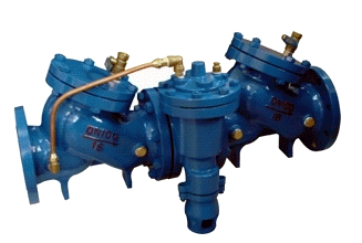HS41XA帶過濾防污隔斷閥由兩個隔開的止回閥和一個液壓傳動到泄水閥組成,第一個止回閥閥體內裝有過濾網。由于止回閥的局部水頭損失,中間腔內的壓力始終低于入水口的壓力。這個壓差驅使泄水閥處于關閉狀態,管路正常供水。在壓力異常時,(即出口端壓力高于中堅腔),即使兩個止回閥都不能反向密封,安全泄水閥也能自動開啟將倒流水泄空,并形成空氣隔斷,保證上游供水衛生安全。